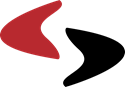 The logo is two-colored in red and black. The left boomerang is red, the right boomerang is black and the company name is black.