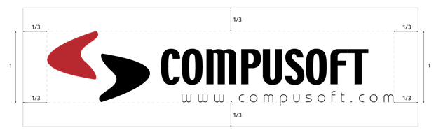 The space around CompuSoft's logo must be at least one third of the total height of the logo.