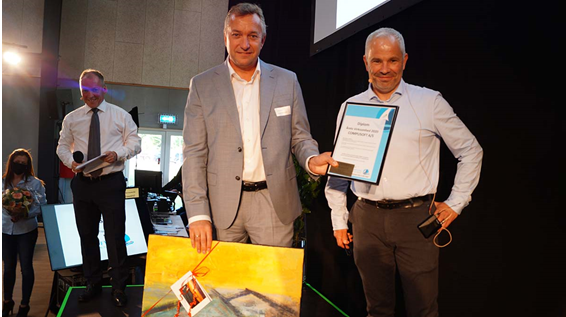 CEO Thomas Traberg-Larsen receives the “Company of the Year 2020” award from Nordfyns Erhverv og Turisme. The award was presented at Nordfyns Erhvers og Turisme’s (NEET) general assembly on June 10th, 2021, by chairman, Jimmy Rasmussen.