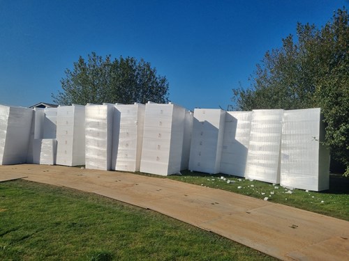 Today insulation for the foundation arrived. It takes up quite a lot of space!